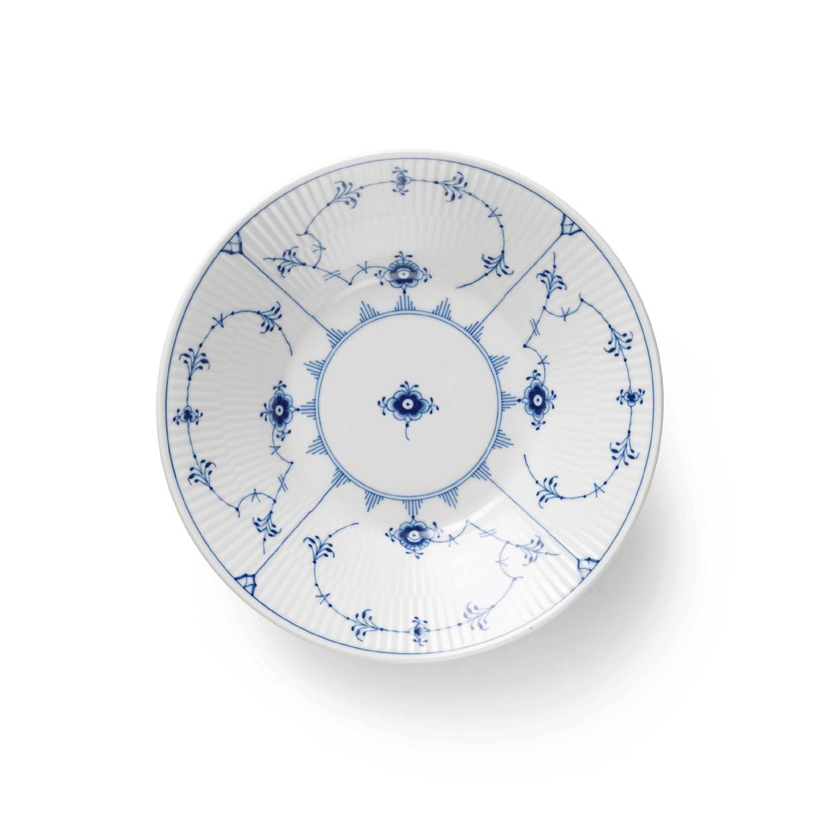 На узор Blue Fluted влияет своя «грамматика» - рельефные канавки задают ритм, а кобальт «играет» на свету. Это качество подглазурной живописи обеспечивает долговечность цвета. Датские мастера адаптировали восточные мотивы, создавая строгие и элегантные композиции, которые легко узнаваемы.