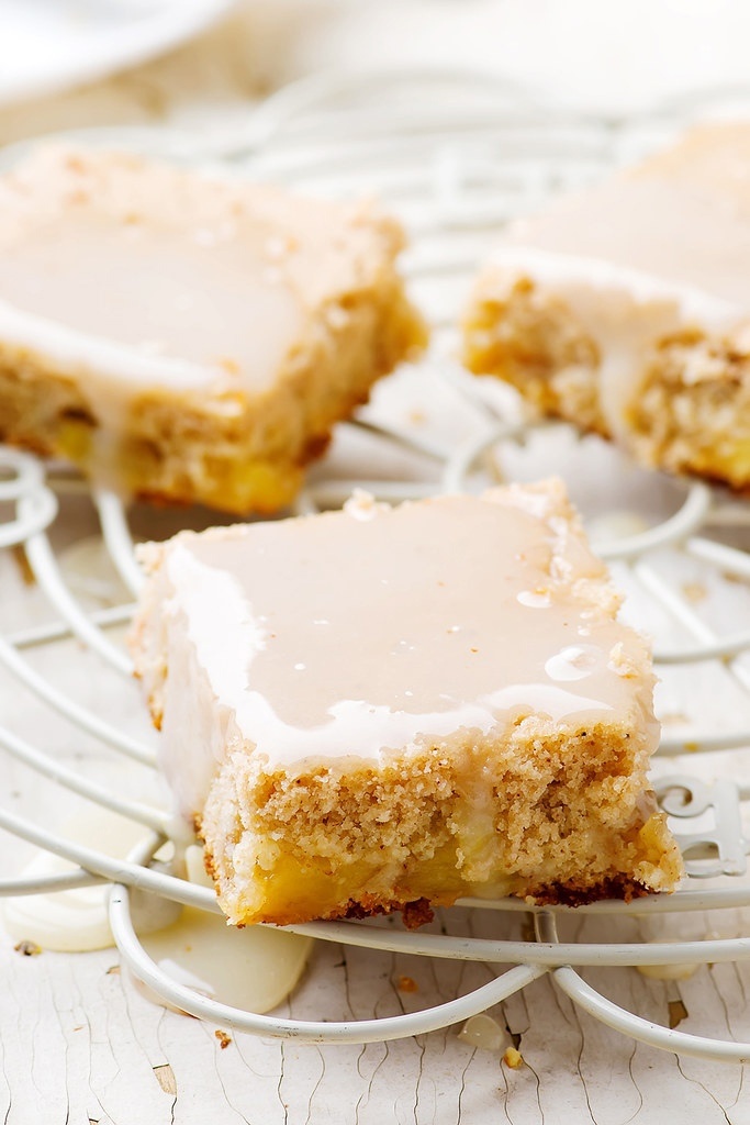 4. Чтобы сделать глазурь, взбить венчиком сахарную пудру с молоком и 1 ч.л. ванильного экстракта до получения однородной массы. Остуженный пирог обильно полить глазурью и подавать теплым, пишет источник.