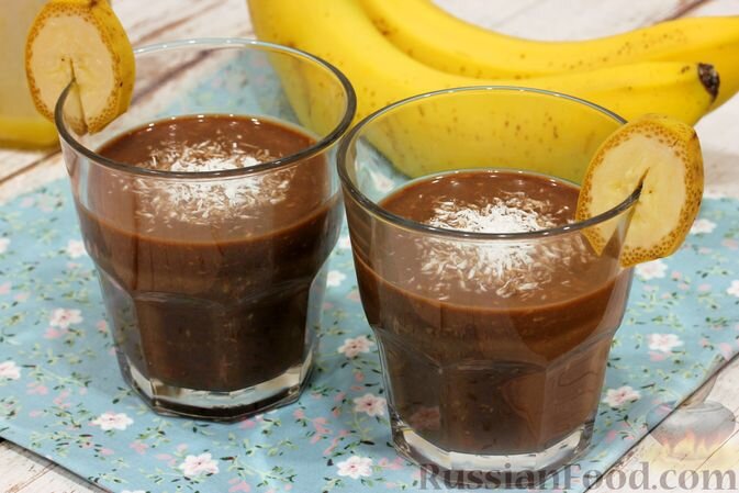 - Шоколадный смузи с бананом — идеальный вариант для настоящих сладкоежек. Сочетание банана и какао создаёт гармоничное угощение, а мед добавляет нужную сладость.