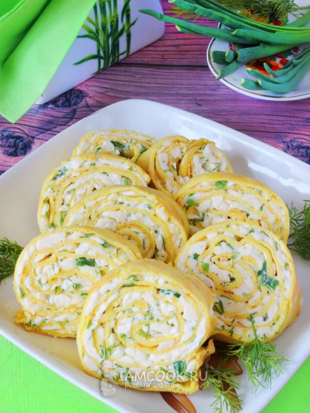 После того как рулет охладился, его нарезают острым ножом на кусочки толщиной приблизительно 2 см, а затем подают на стол. Наслаждение гарантировано!