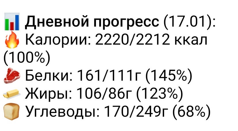 Женщина заметила, что иногда потребляет больше углеводов, особенно когда понимает, что их недостаток негативно сказывается на физической активности. Интересно, что, несмотря на выводы о возможности увеличить потребление углеводов, она предпочла сохранить привычный рацион, который позволяет ей чувствовать себя комфортно. Это свидетельствует о её многолетнем опыте в вопросах питания и диет.