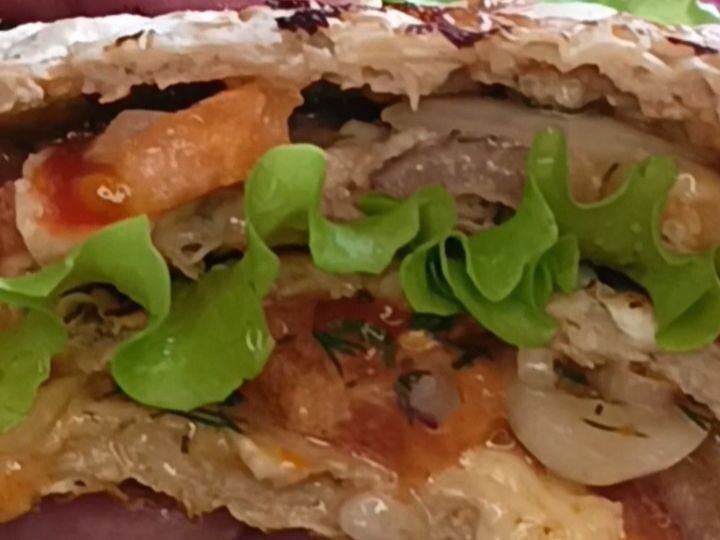 - 1. Закройте чизбургер второй половиной лаваша.