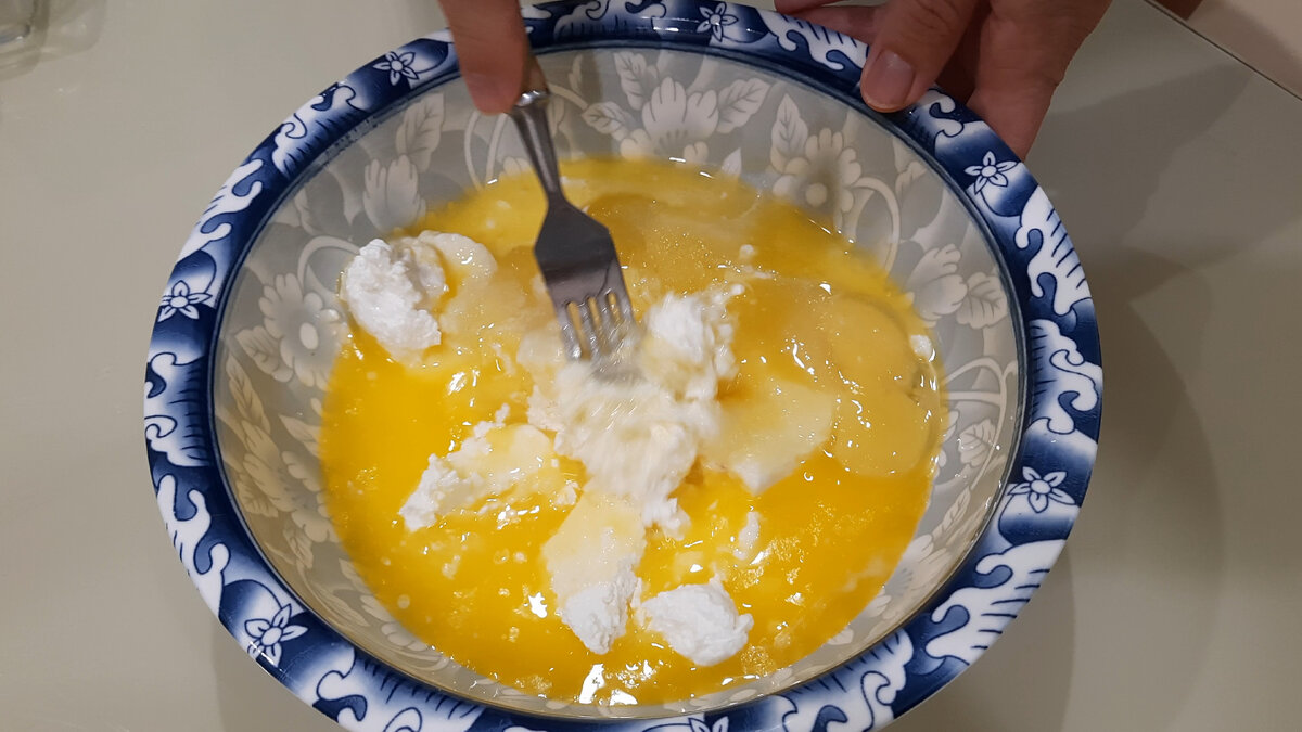 Для начала подготовьте тесто: в глубокой миске соедините яйца, сахар, молоко и растопленное сливочное масло, добавьте соль и соду. Хорошо перемешайте смесь до однородной консистенции. Затем постепенно введите муку, замешивая тесто с помощью ложки или руками до нужной плотности.