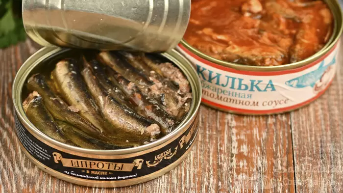 Далее влить 1.7–1.8 литра горячей воды. Чтобы получить запоминающийся вкус, использовать одну банку кильки в томатном соусе и одну банку шпрот. Добавьте соль, лавровый лист, молотый перец и кипятите суп еще 2 минуты. После это добавить мелко нарезанную зелень и маслины. Суп подается с лимоном и сметаной, обязательно с хрустящим хлебом.
