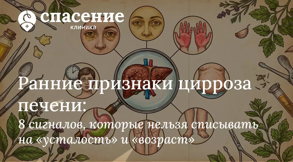 Каждый из этих симптомов сам по себе не является доказательством цирроза, но их сочетание должно стать поводом для обращения к врачу.