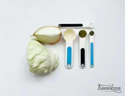 Шаг 1: Начните с подготовки ингредиентов. Лук нарежьте мелкими кубиками, а капусту — тонкой соломкой. Чтобы упростить процесс, капусту можно натереть на терке. Не забудьте удалить толстые прожилки!