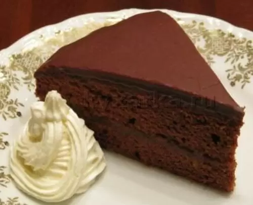 Промазывают нижнюю часть бисквита абрикосовым конфитюром, заранее разогретым. Для глазури варят сироп из сахара и воды, в который потом добавляют растопленный шоколад, тщательно перемешивая. Готовую глазурь аккуратно выливают на торт, равномерно распределяя ее по поверхности.