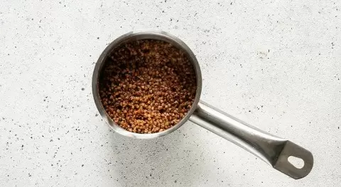 Начать стоит с гречневой крупы: в маленькую кастрюлю следует влить 120 мл воды, добавить гречку и немного соли. Доводим до кипения на сильном огне, затем накрываем крышкой и уменьшаем огонь до среднего, оставляя вариться около 10 минут. После этого снимаем с плиты и даем остыть.