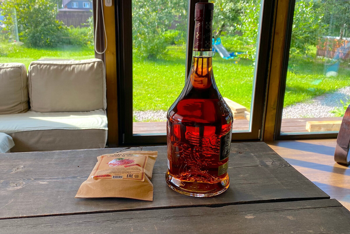 - Внимательно ознакомьтесь с содержимым пакета и отмерьте нужное количество. В случае небольшого объема, например 700 мл коньяка, достаточно использовать половину пакета с настойкой.