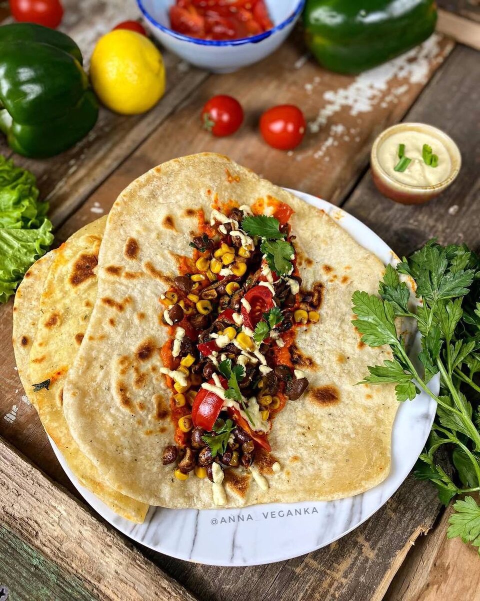 Тако с пряной фасолью и овощами – это не просто обед или ужин, а настоящая гастрономическая находка для веганов и любителей мексиканской кухни. Это сытное и вкусное блюдо, в котором нет мяса и молочных продуктов, идеально подходит для вечеринки или семейного сбора.