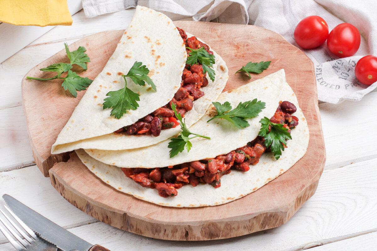 Фахитос — это популярное мексиканское блюдо, которое легко приготовить и можно адаптировать под вегетарианское меню. Изначально это лакомство пришло к нам из кухни племени Майя, где мясные начинки заворачивали в лепешки. Но давайте придадим этому блюду более легкую интерпретацию с использованием фасоли и свежих помидоров, не теряя при этом насыщенности и питательности.