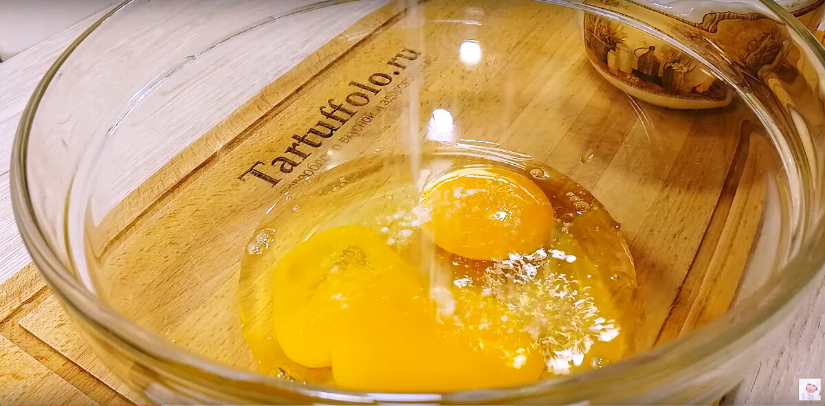 Начнем с основных ингредиентов. В глубокую миску вбиваются два крупных яйца, добавляется щ pinch соли, немного сахара и капля ванилина для аромата. После этого все тщательно взбивается венчиком, и в эту смесь вливается 200 граммов кефира с жирностью 3,2%, сообщает Дзен-канал "Алена Митрофанова - рецепты.".