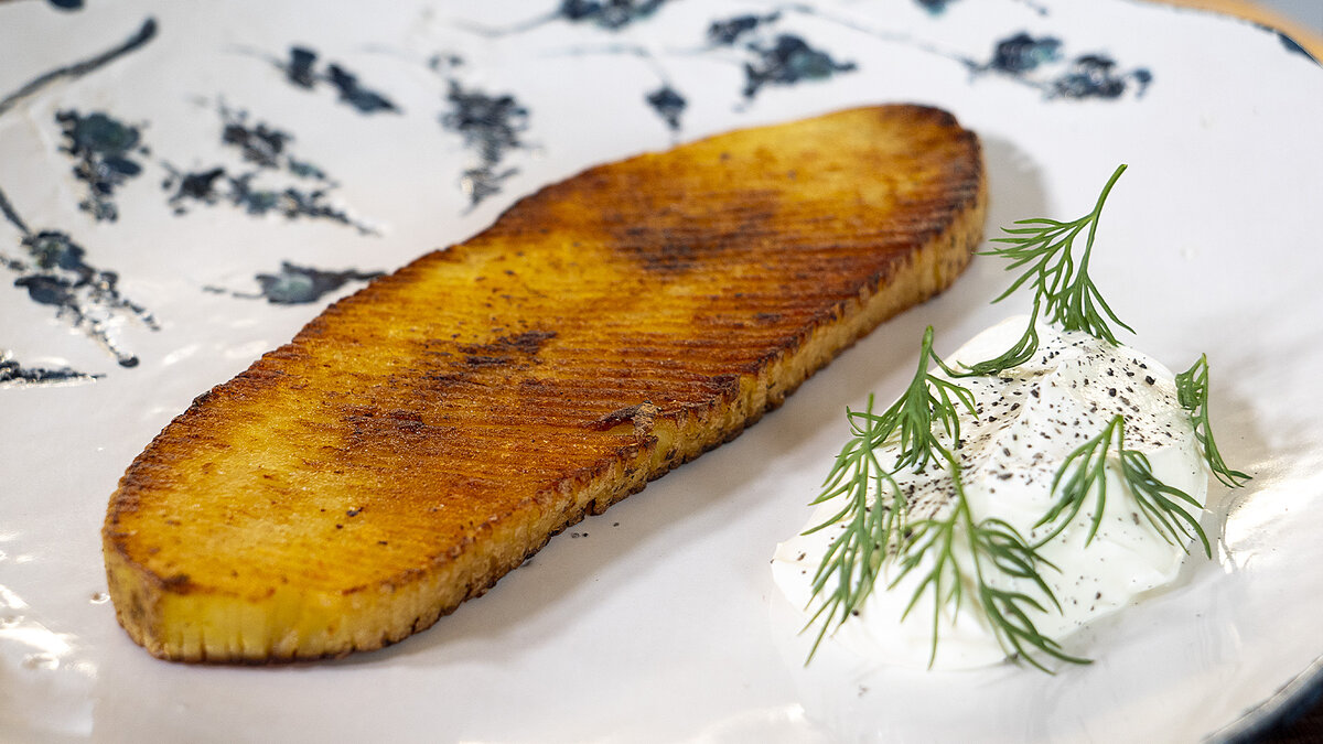 После формирования надрезов аккуратно переверните картошку и повторите ту же процедуру с обратной стороны. Далее, на предварительно разогретую сковороду налейте немного растительного масла и отправьте картофель жариться на минимальном огне. Жарьте рецепт около четырех минут с каждой стороны, пока он не станет золотистым и полностью пропечённым внутри. Для усиления аромата можно добавить зубчик чеснока прямо в сковороду. Не забудьте посолить и поперчить по вкусу.