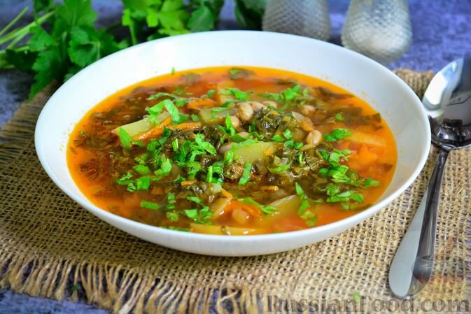 1. Суп с консервированной фасолью и щавелем