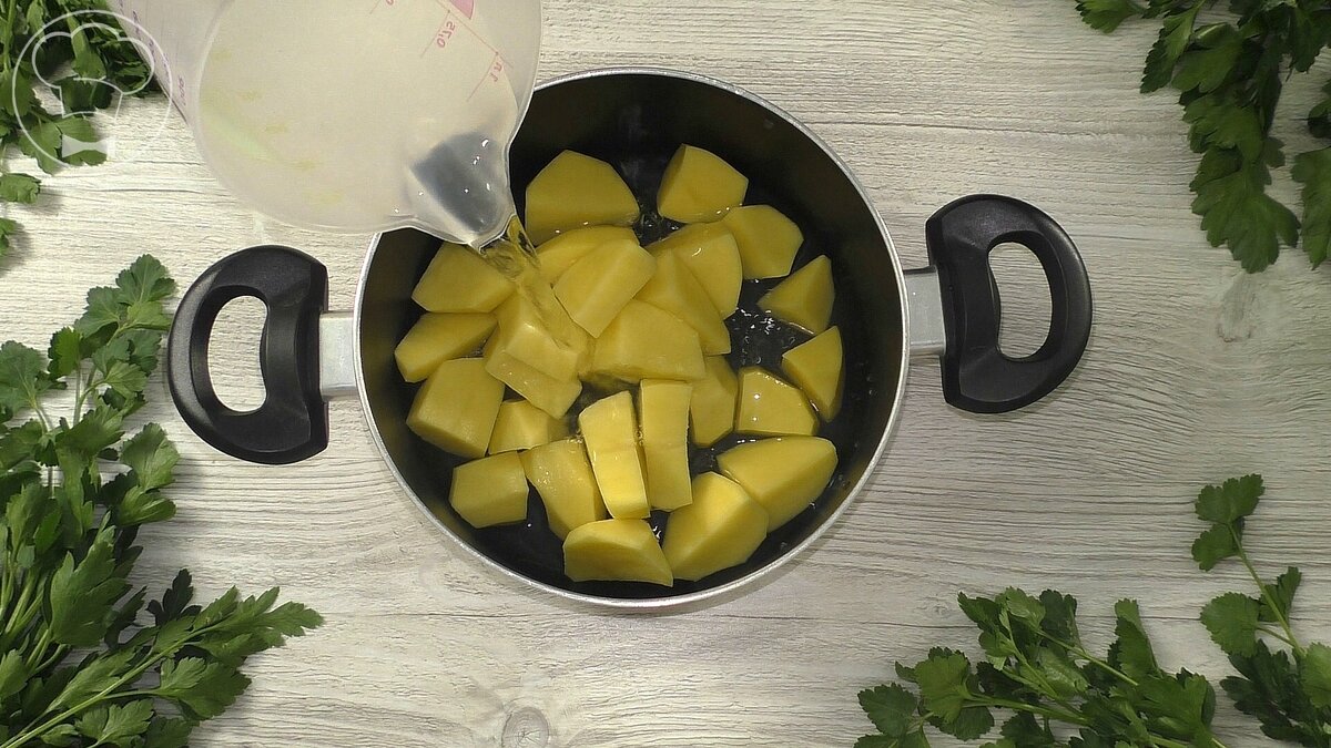 В первую очередь, картофель необходимо отварить: его следует нарезать на четвертинки и варить на медленном огне в 400 мл холодной воды, стараясь сохранить влагу. Когда картофель станет мягким, нужно его тщательно измельчить с помощью блендера. Если блендер пластиковый, лучше подождать, пока картофель немного остынет, сообщает Дзен-канал "Красилова Наталья / Food".