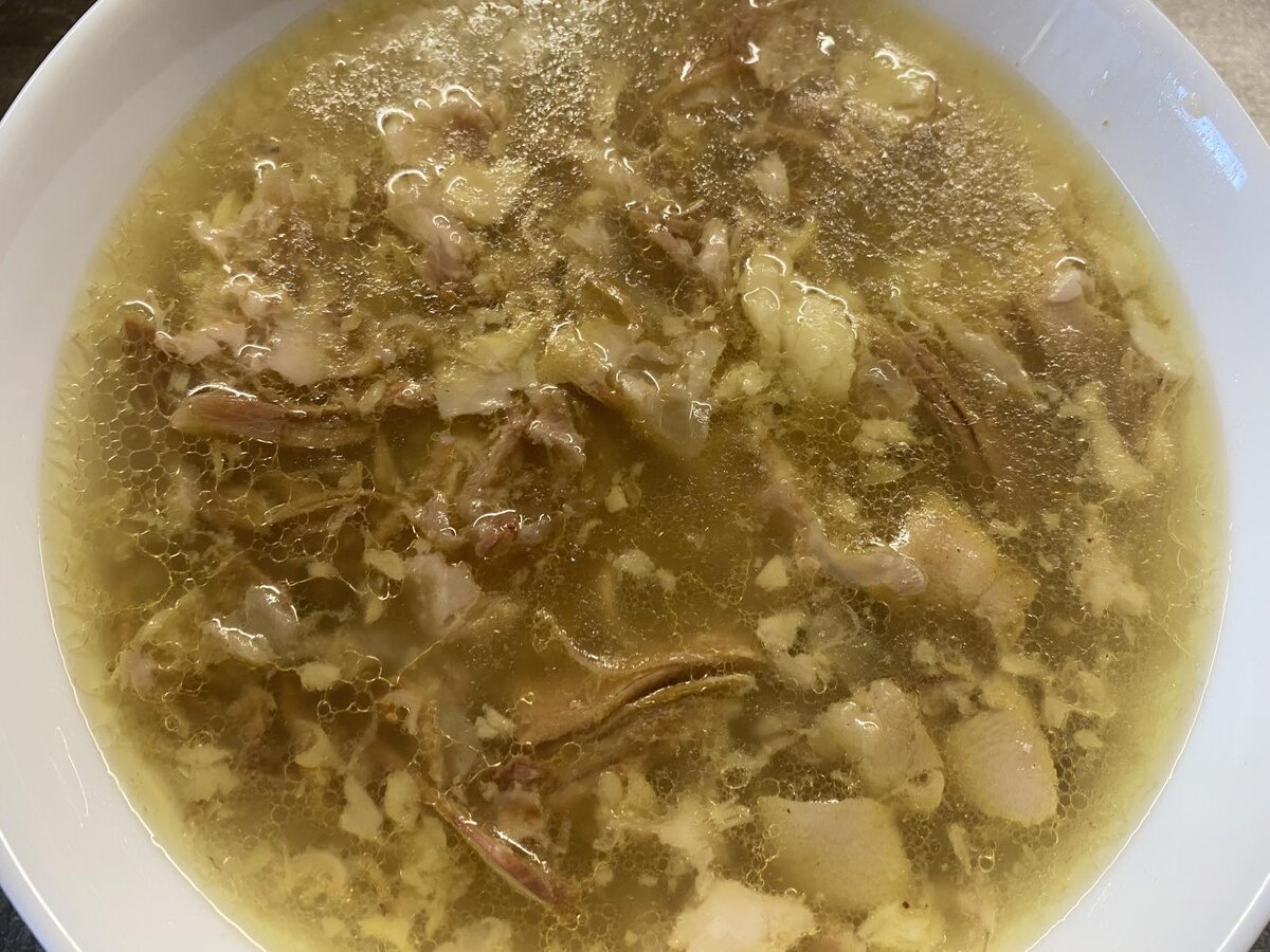 5. Время пришло — мясо готово к разделке! Отделите его от костей, разложите в формы и залейте бульоном. Не забудьте добавить чеснок и перец для остроты.