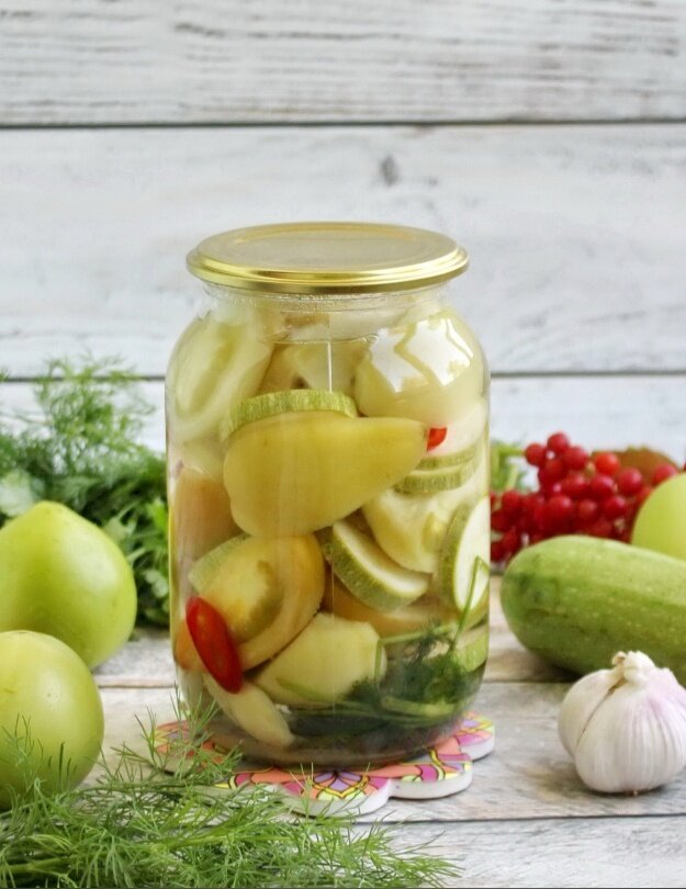 Как приготовить пикантные зеленые помидоры с кабачками на зиму