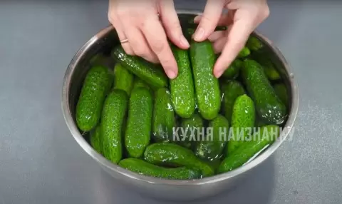 1. Огурцы подготовить: замочить в воде на несколько часов, периодически заменяя её. Использовать только пружинистые сорта.