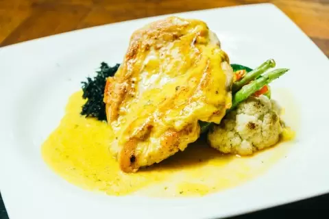 На каждую тарелку выкладывается порция овощного рагу, сверху помещается хрустящее рыбное филе и все это щедро поливается соусом холландез. Не забудьте украсить блюдо свежей зеленью. Этот деликатес точно станет украшением любого стола!