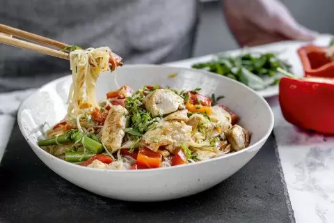 Салат с индейкой, фунчозой и свежими овощами стал настоящим кулинарным открытием для любителей легких и питательных блюд. Фунчоза, прозрачная рисовая лапша, привносит в блюдо уникальный вкус и текстуру, напоминая о восточных кулинарных традициях.
