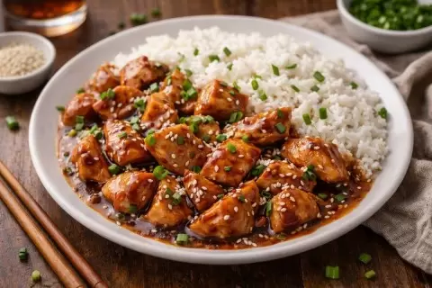Нарезая куриное филе, лучше делать это не слишком мелко — полосками или кубиками, чтобы сохранить сочность. Важно обсушить мясо перед жаркой, чтобы добиться золотистой корочки. Для соуса просто смешайте все ингредиенты и тщательно перемешайте. На сковороде обжарьте курицу до румяности, добавьте соус и дайте ему загустеть, укутывая курицу. В конце блюда отлично подойдёт кунжут.