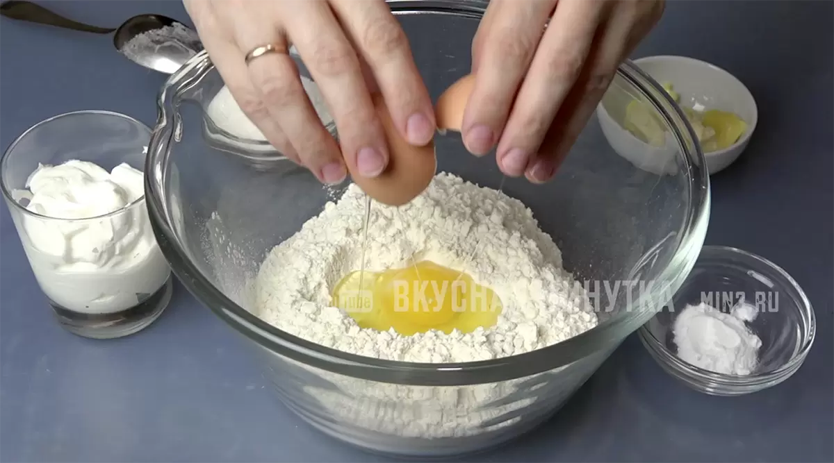 Начало простое: в большой миске соединяются все ингредиенты, предварительно просеянная мука – не исключение. Всё тщательно перемешивается, пока не образуется мягкое тесто.