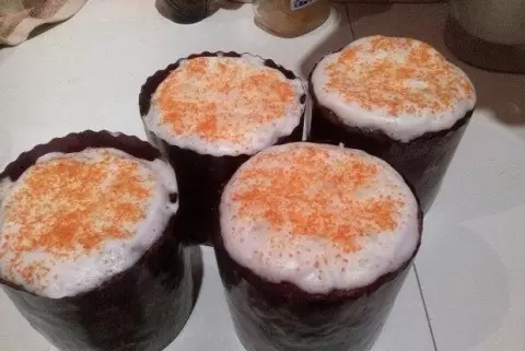 7. Для глазури взбейте белки с сахарной пудрой до устойчивых пиков и украсьте панеттоне на свой вкус.
