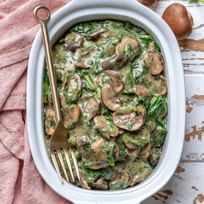 Восхитительное сочетание: грибы со шпинатом в сливочном соусе