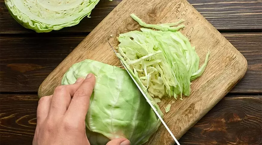 Квашеную капусту перед использованием достаточно отжать от рассола или оставить его, в зависимости от рецепта. Свежую капусту стоит нашинковать и слегка перетереть с солью, чтобы она уменьшилась в объеме и быстрее приготовилась. Это также поможет раскрыть вкус и сделать её более сочной во время готовки.