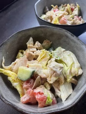 - Салат с курицей и секретной заправкой. Этот салат удивляет своей простотой и оригинальностью. В его состав входят запечённые куриные бедра, нарезанные кубиками, свежие овощи: огурцы, помидоры и листья айсберга, а кроме того, уникальная заправка на основе смеси сметаны и кетчупа. Такой неожиданный подход к заправке сделает салат приятно необычным.