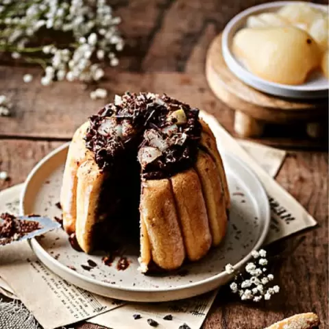 Шоколад и груша всегда создавали беспроигрышные комбинации, и эта деликатесная шарлотка - не исключение. Этот десерт идеально подходит для тех, кто ценит быструю и простую готовку. Получится намного быстрее, если делать его с помощью шоколадного мусса, который легко приготовить.