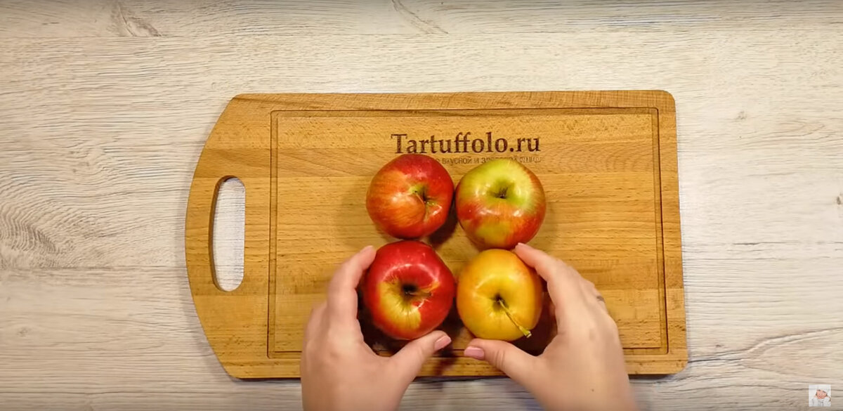 Яблоки очищают от кожуры и семечек, после чего помещают в полиэтиленовый пакет. Пакет завязывают и делают несколько проколов, чтобы пар выходил. Затем яблоки отправляют в микроволновку на 5 минут: они должны стать мягкими.