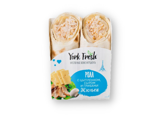 Свернуть лаваш с начинкой плотно, нарезать на порционные куски и наслаждаться. В ассортименте доступны готовые варианты с двумя роллами в упаковке: с цыплёнком и грибами, а также с бужениной и овощами — сохраняют свежесть без пальмового масла.