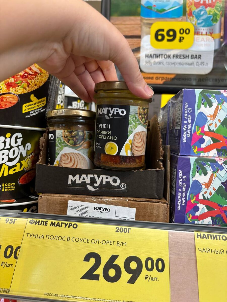 - Филе тунца в соусе с оливками и орегано - идеально подходит для любителей морепродуктов, цена - 269 рублей за 200 г.